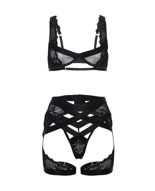 Thalia Mesh & Lace Underwire 3 pc Set - Black SM