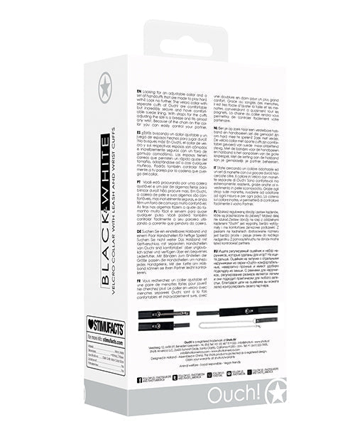Shots Ouch Black & White Velcro Collar w/Leash & Hand Cuffs - Black