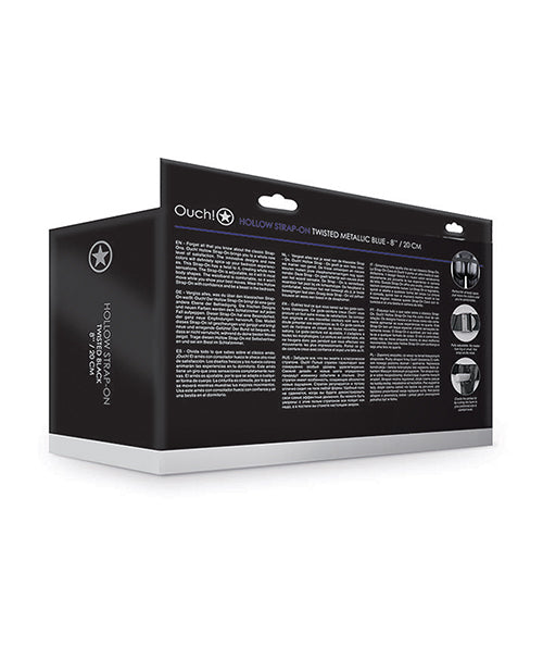 Shots Ouch 8" Textured Curved Hollow Strap On - Metallic Blue