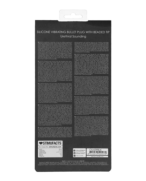 Shots Ouch Urethral Sounding Silicone Vibrating Bullet Plug w/Beaded Tip - Black