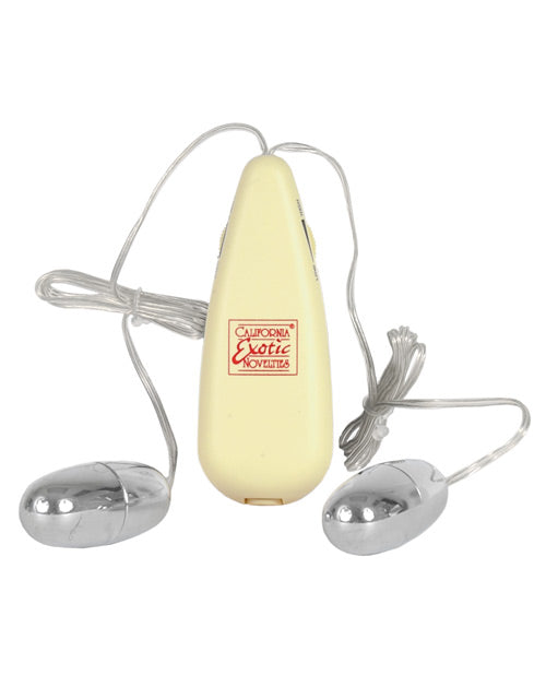 You'll find a silver shine of pleasure glowing when you enjoy with these multi-speed vibrating bullets. The Pocket Exotics Vibrating Double Silver Bullets are made from ABS with silver plating, making them safe, sensual and stimulating all in one shiny silver package.