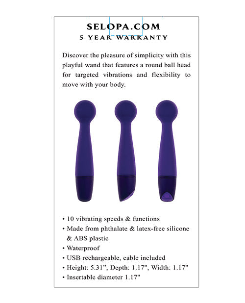Discover the pleasure of simplicity with this playful wand that features a round ball head for targeted vibrations and flexibility to move with your body. Five Year Warranty.