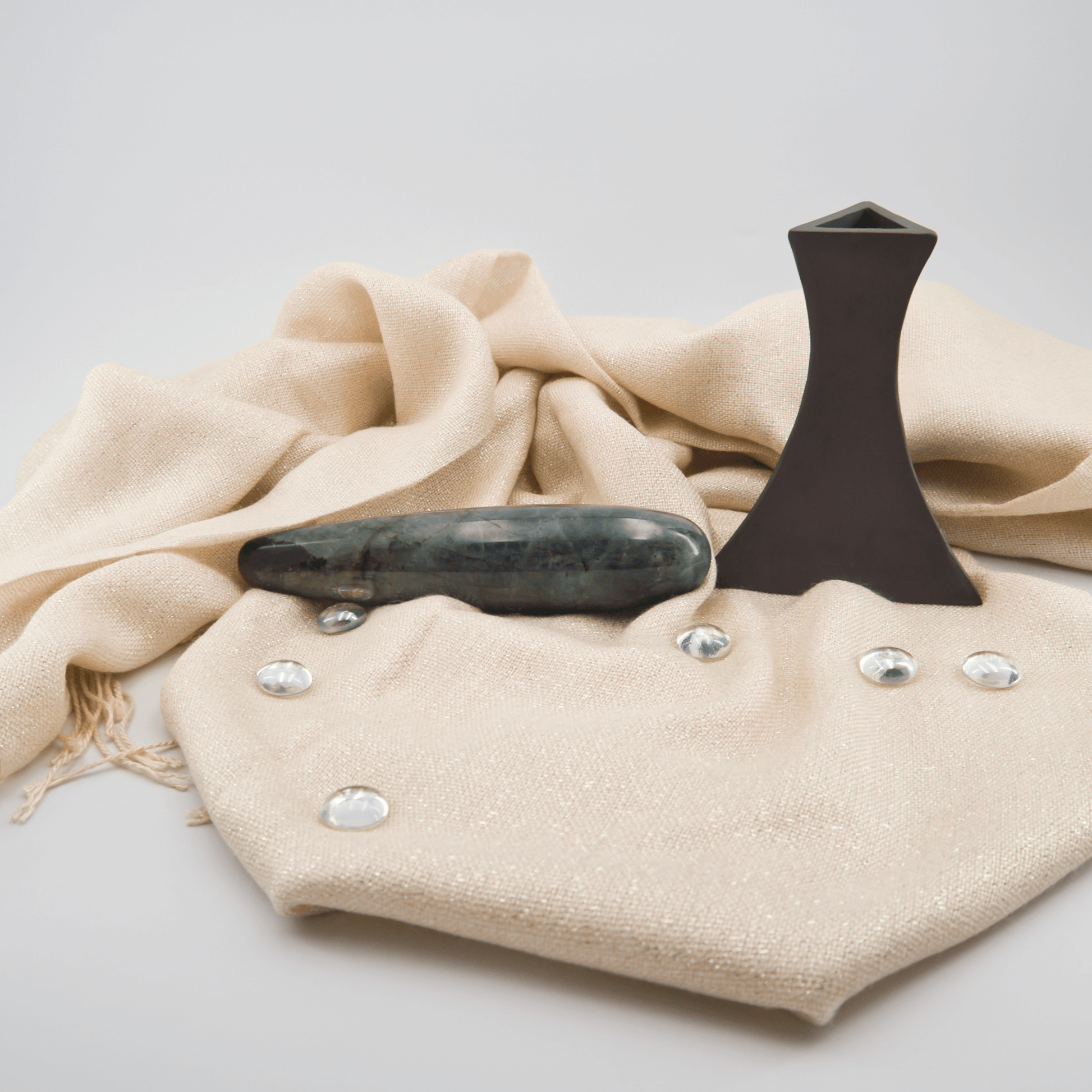 Featuring a gracefully tapered shaft that begins with a generous curve and slims down to a perfectly shaped tip, Taperella-L YONI Labradorite Pleasure Wand offers effortless internal stimulation. Whether you’re exploring solo or sharing the experience with a partner, this luxurious wand promises to unlock new heights of pleasure and sensuality with every use.