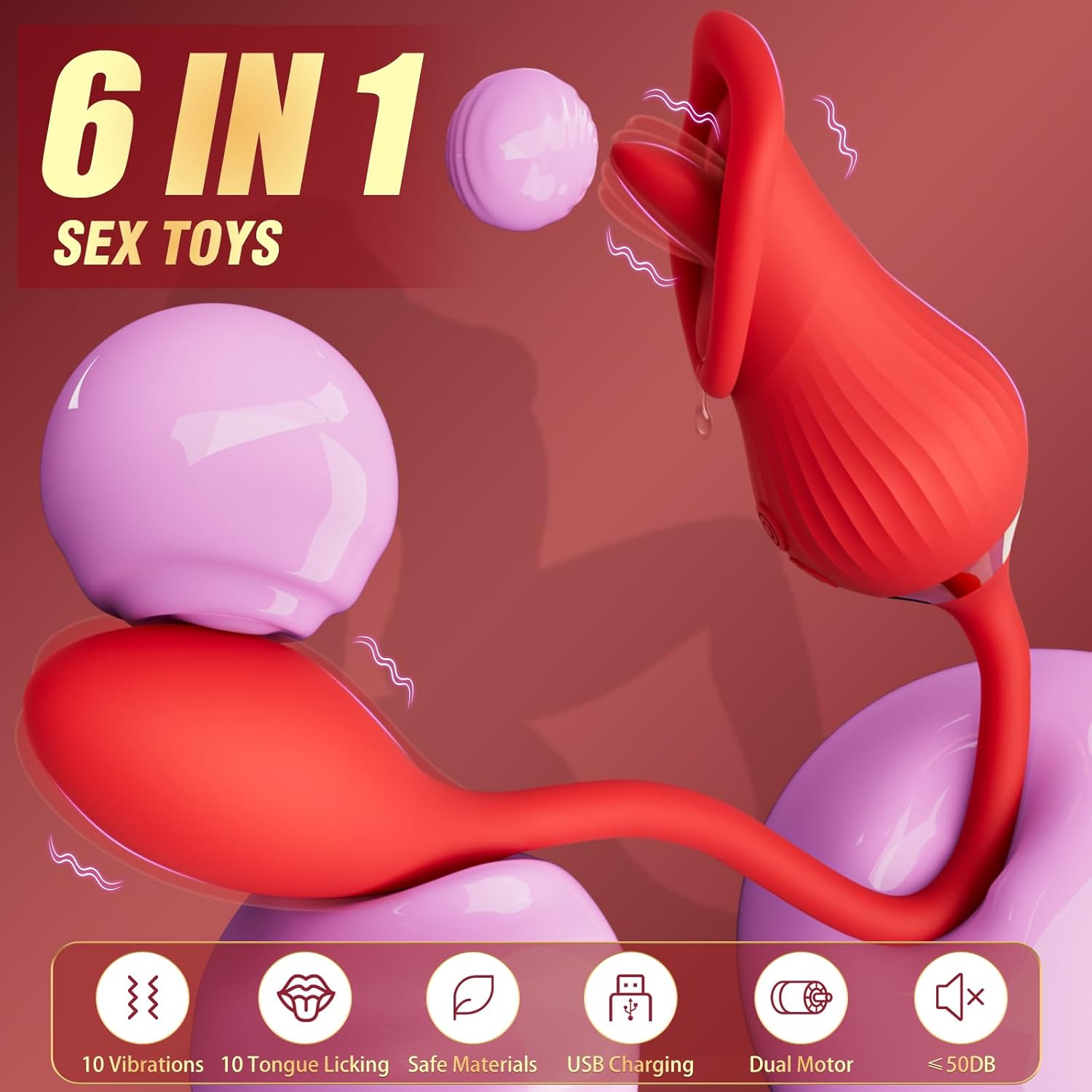 Dual Stimulation: Simultaneously targets the clitoris and G-spot with independent tongue and egg motors.