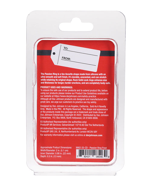 Rock Solid The Passion Ring Holiday Edition. The Passion Ring is a fan-favorite shape made from silicone with an ultra-smooth and soft finish. It is durable, unscented and can stretch while retaining its original shape. Rock solid cock rings enhance size and thickness for longer, harder erections.